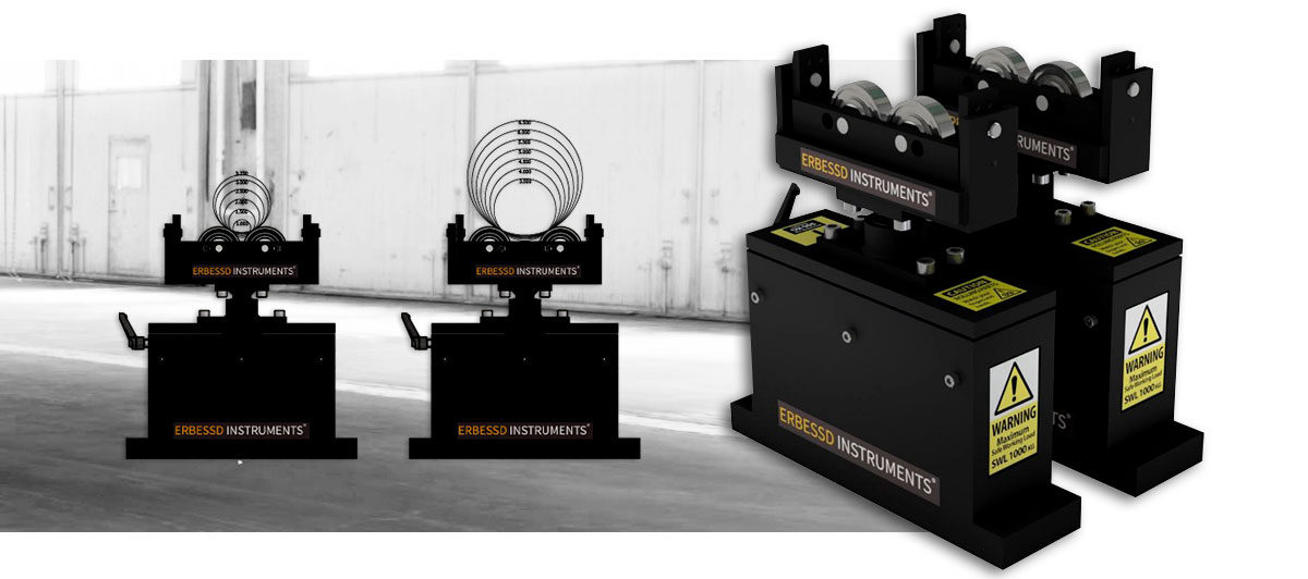 The SBS-1000 can support up to 1000 kg (500 kg each support), and with its 2 roller positions it allows shaft diameters of 152 mm (6 in). Also has an elevator screw to adjust the position in case the tracks rotor supports have different diameters up to 25.4 mm (1 in) and a swinging movement for auto-alignment.
