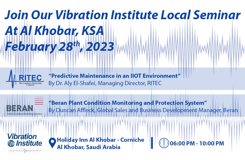 RITEC, as the sole representative of the Vibration Institute in the Middle East, announced another informative Vibration Institute Local Seminar, held in Holiday Inn AL Khobar – Corniche, Saudi Arabia on Tuesday, May 16th, 2023 from 6:00 PM to 10:00 PM.